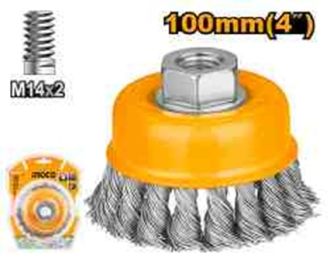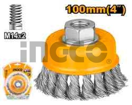 Щетка чашечная INGCO WB21001 используется для работы с УШМ. Служит для зачистки поверхностей покрытых лаком, краской, подходит для устранения ржавчины на металлических изделиях.