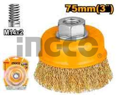 Щетка чашечная INGCO WB10751 используется для работы с УШМ. Служит для зачистки поверхностей покрытых лаком, краской, подходит для устранения ржавчины на металлических изделиях.
