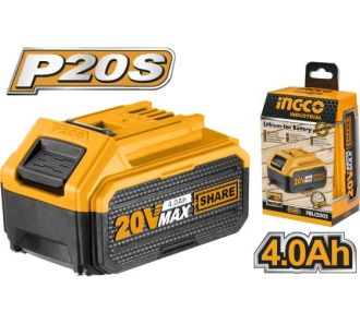 Аккумуляторная батарея Li-Ion 20 В INGCO FBLI2002 INDUSTRIAL емкостью 4 Ач подходит для всех аккумуляторных инструментов семейства P20S.