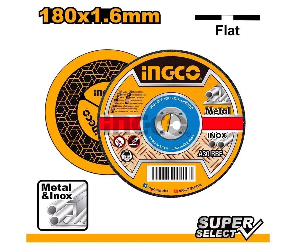 INGCO Диск отрезной по металлу и INOX 180x1.6x22.2 прямой