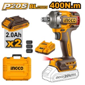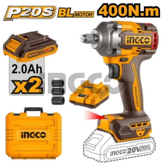 INGCO Гайковерт аккумуляторный бесщеточный ударный Li-Ion 20W INDUSTRIAL 20W 2Ач 2шт/400 Нм
