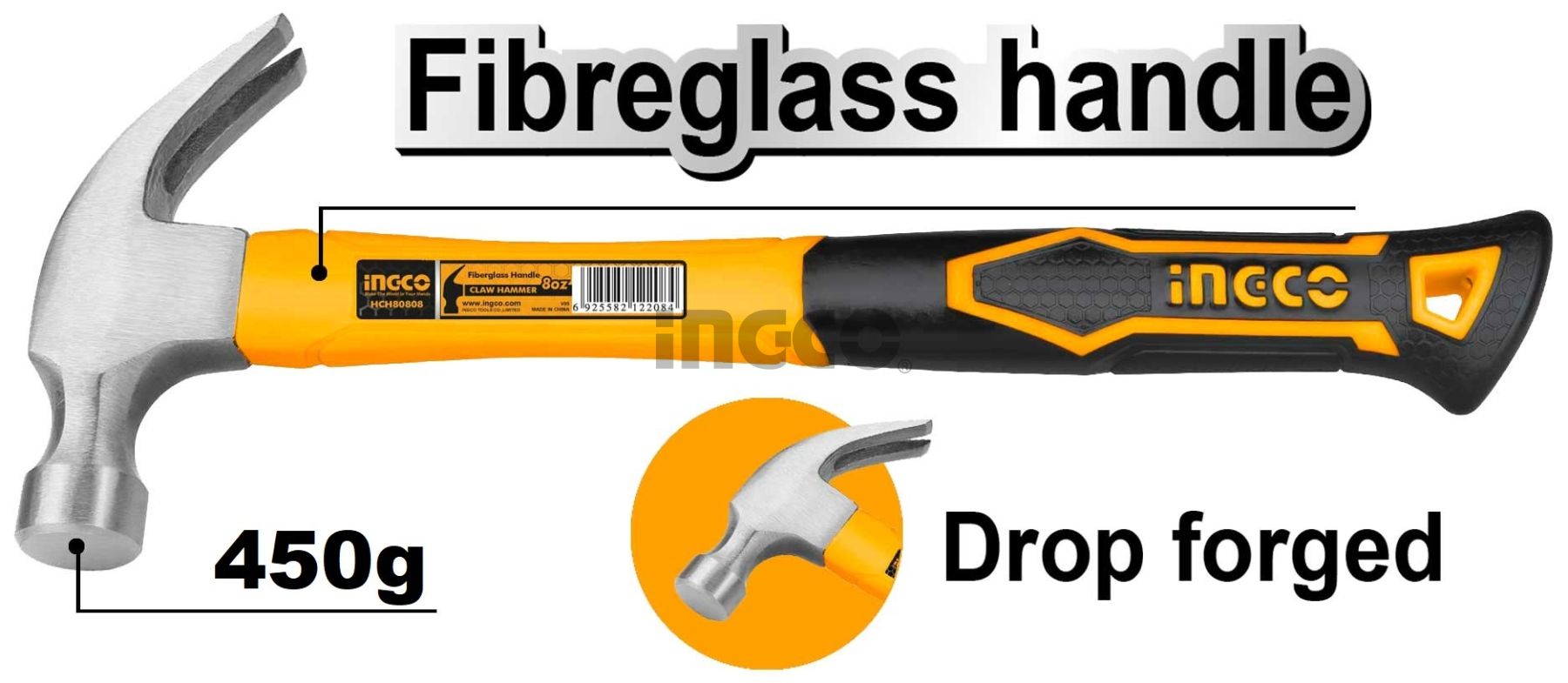 INGCO Молоток-гвоздодёр 450гр./16oz