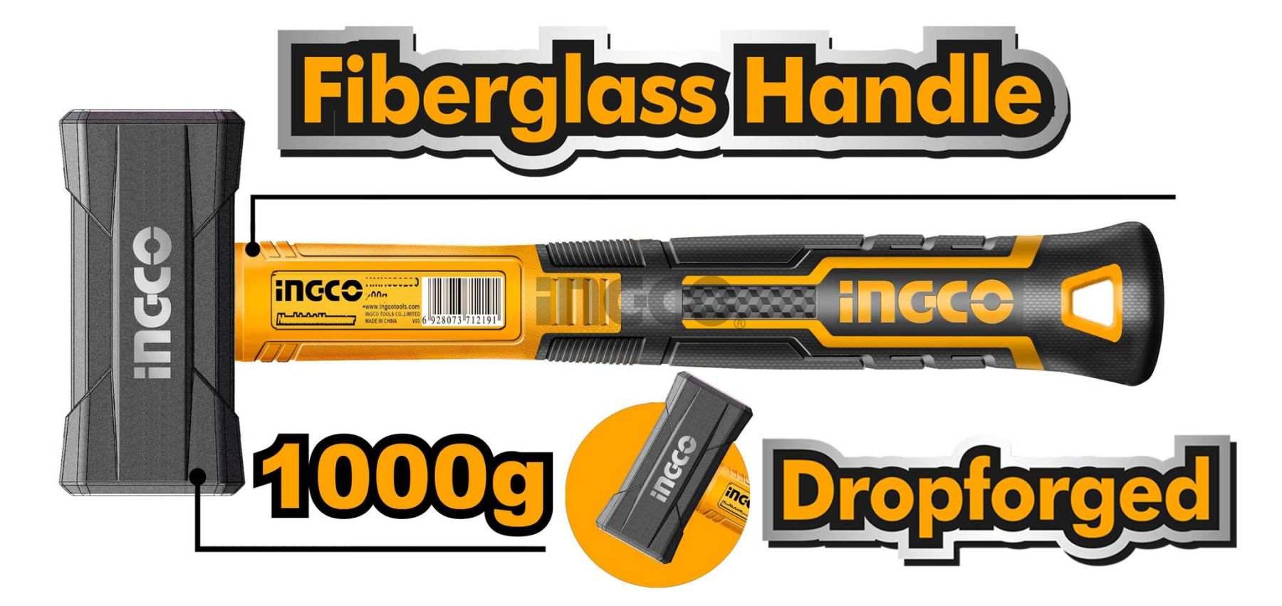 INGCO Молоток каменщика INDUSTRIAL 1000гр с фибергласовой рукояткой