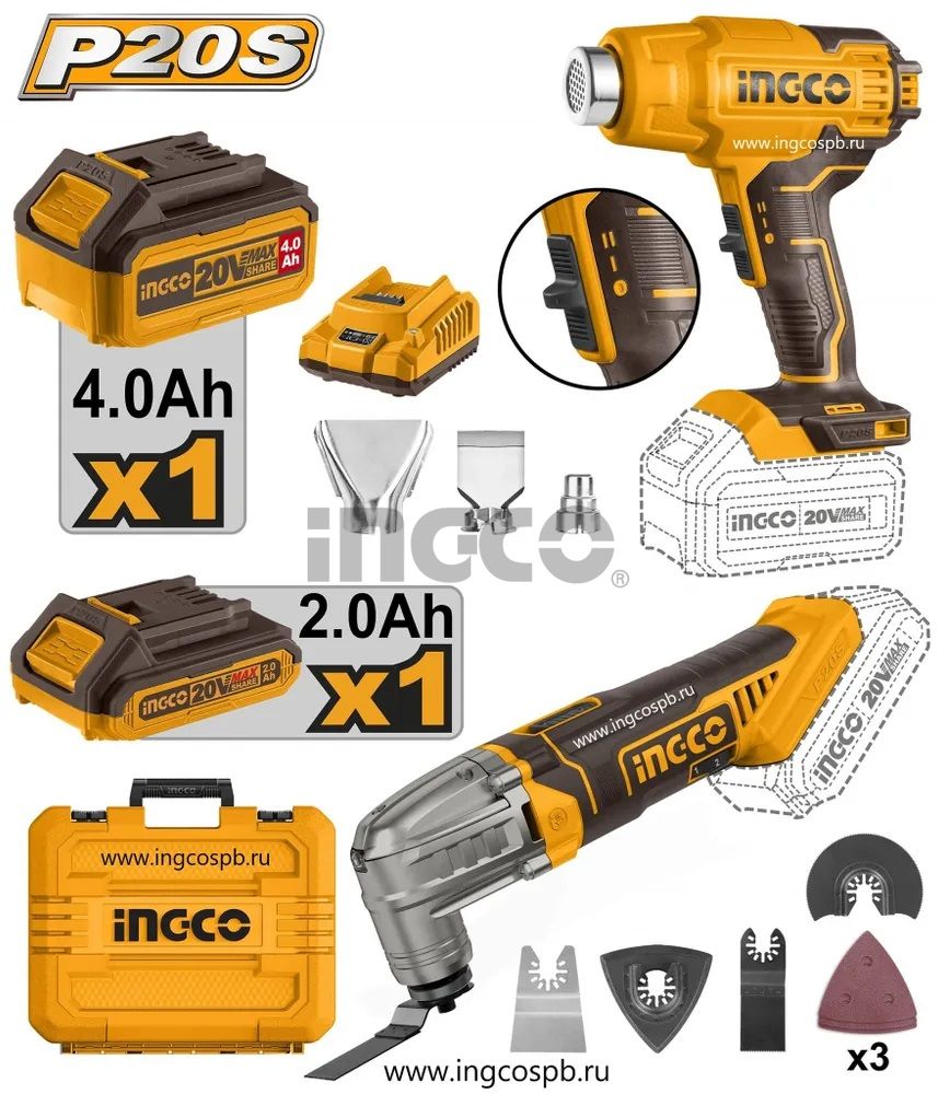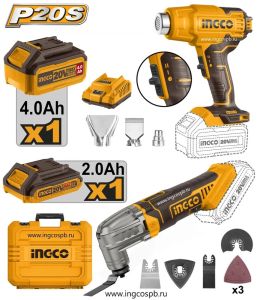 INGCO Набор аккумуляторных инструментов 20W Li-ion (фен и реноватор)
