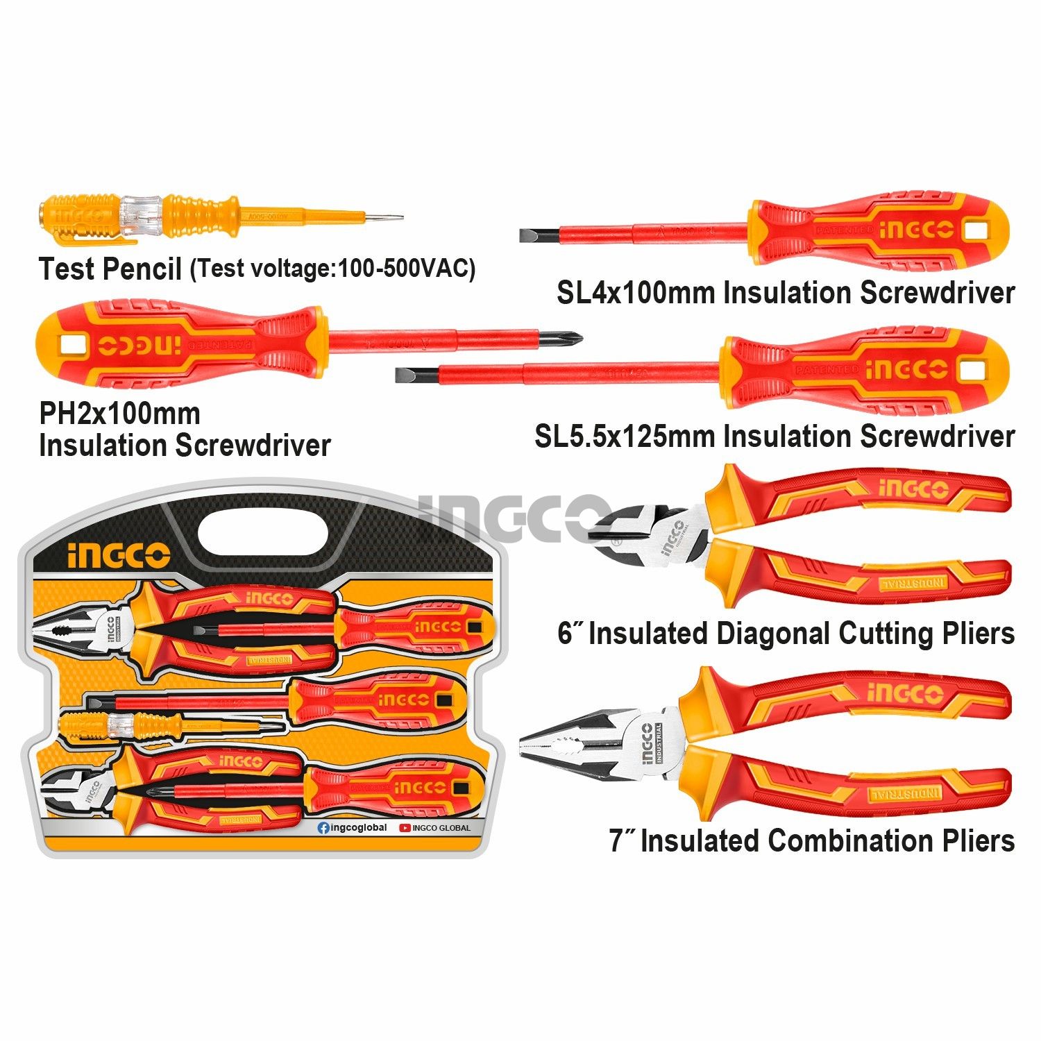 INGCO Набор диэлектрического инструмента INDUSTRIAL 6 шт