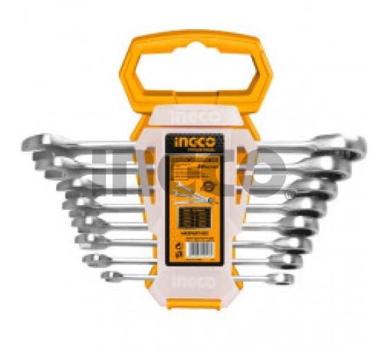 INGCO Набор гаечных ключей с трещоткой INDUSTRIAL 8 шт 8-19 мм