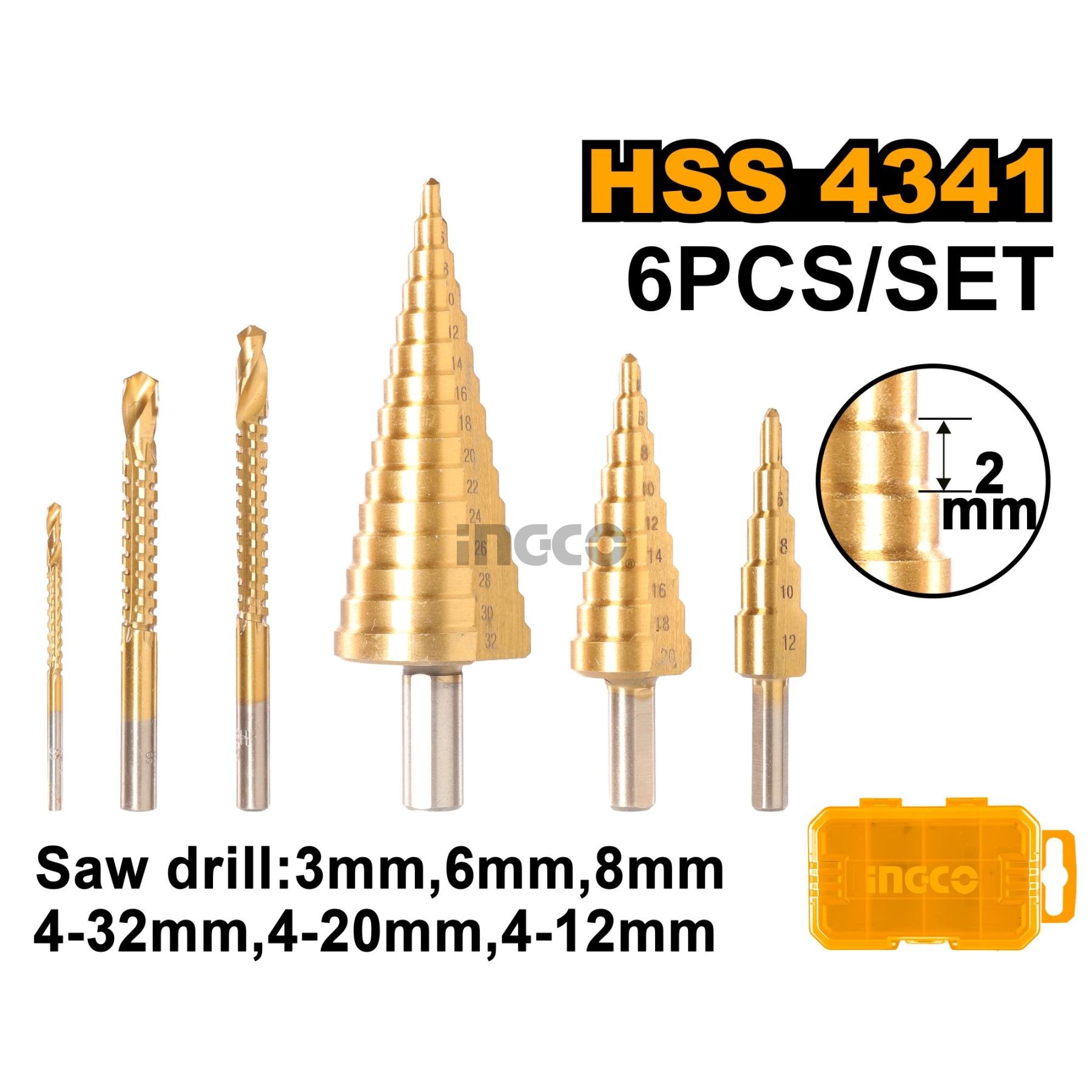 INGCO Набор ступенчатых сверл 6 шт
