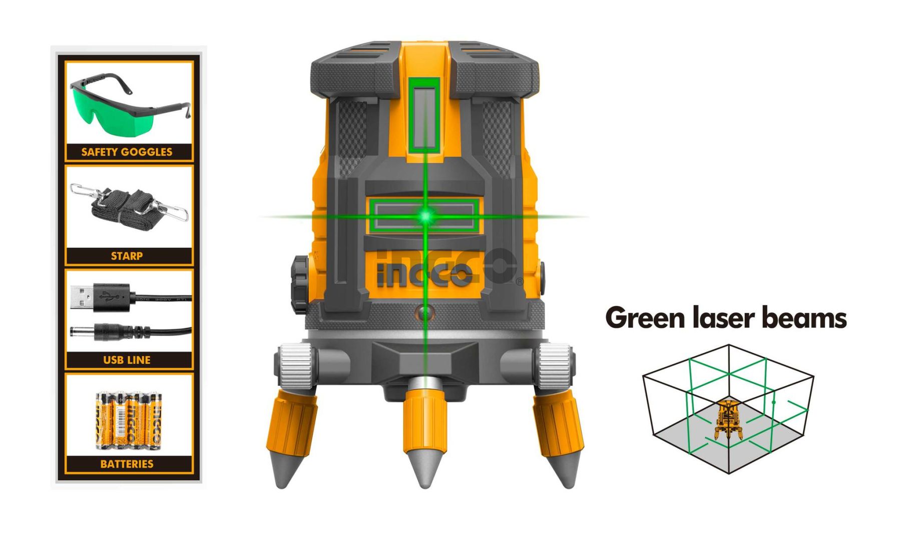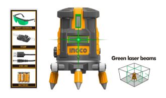 INGCO Нивелир лазерный INDUSTRIAL 30 м GREEN/ Количество лучей 5 шт/ Тип лазера 650 нм
