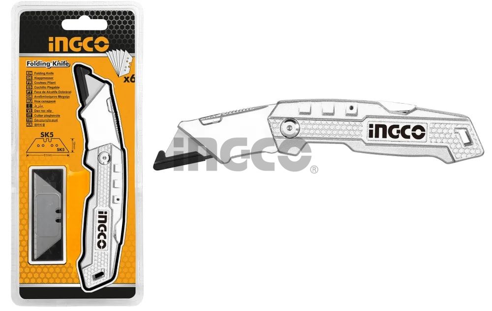 INGCO Нож складной алюминиевый 170 мм /в комплекте 5 лезвий SK5