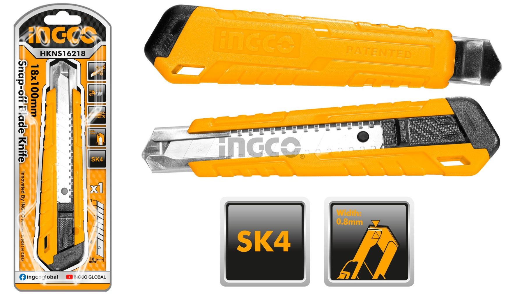 INGCO Нож строительный 18х100 мм /в комплекте 1 лезвие SK4