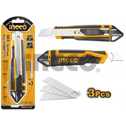INGCO Нож строительный 18х100 мм/ в комплекте 3 лезвия SK4