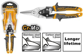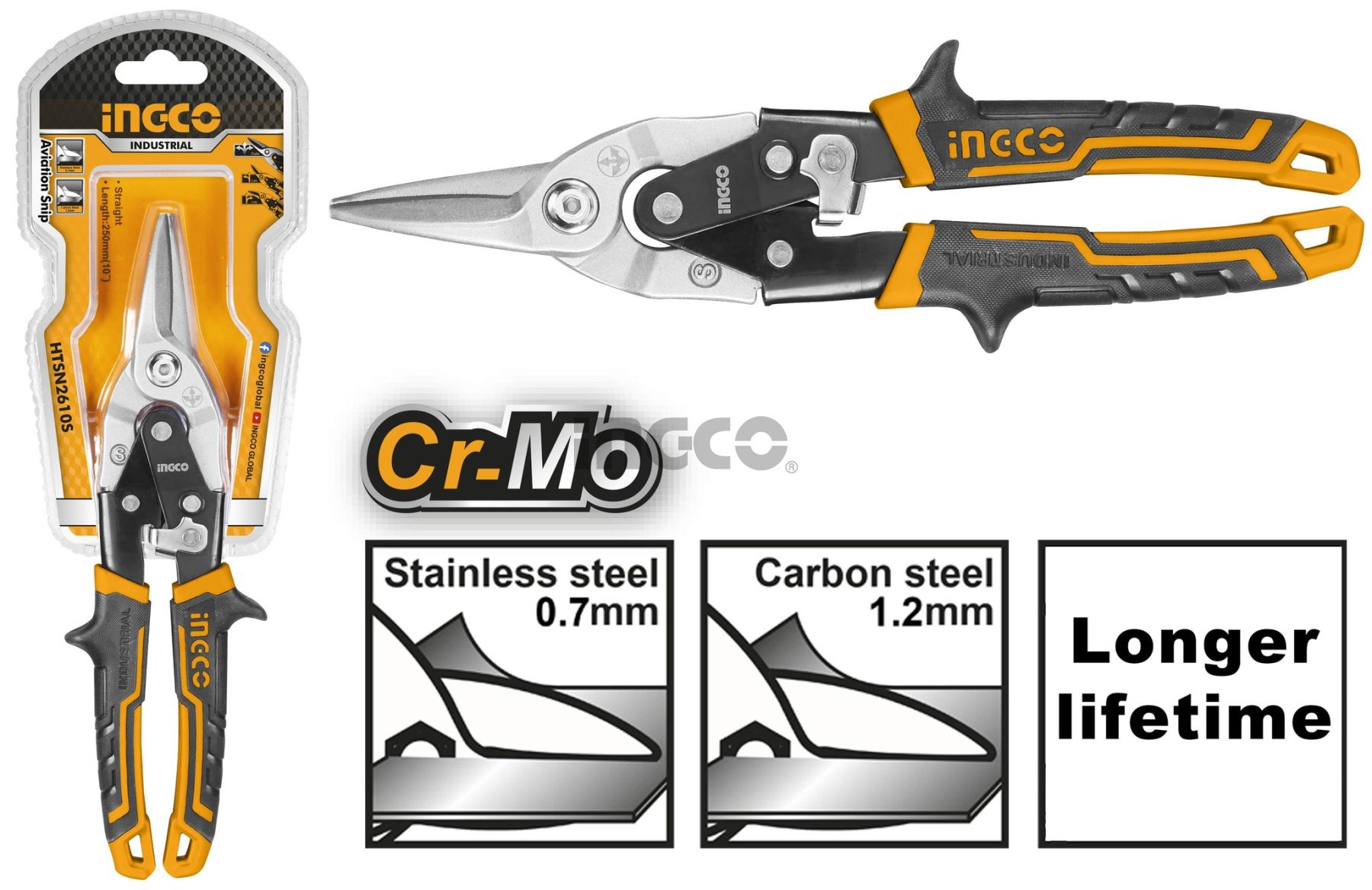 Ножницы по металлу - прямые 250 мм INGCO HTSN2610S INDUSTRIAL - удобный ручной инструмент, который подойдет для разрезания различных материалов металла, линолеума, пластика, резины, картона.