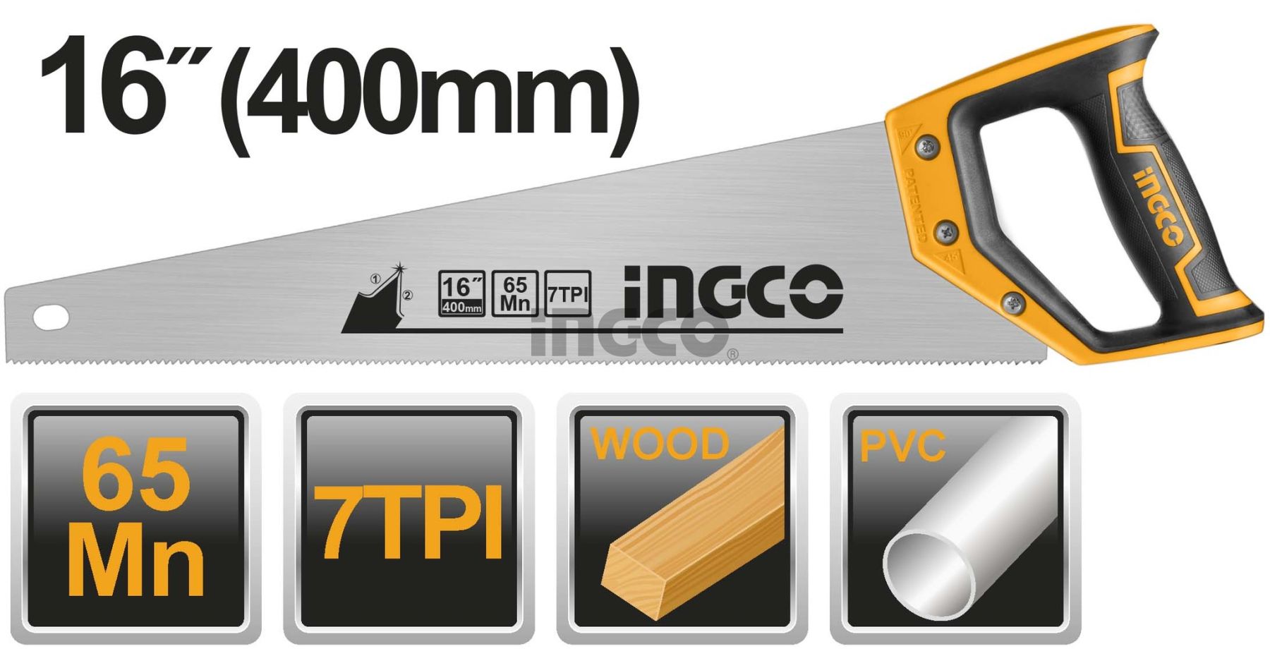 INGCO Ножовка по дереву 400мм 65Мн 7TPI