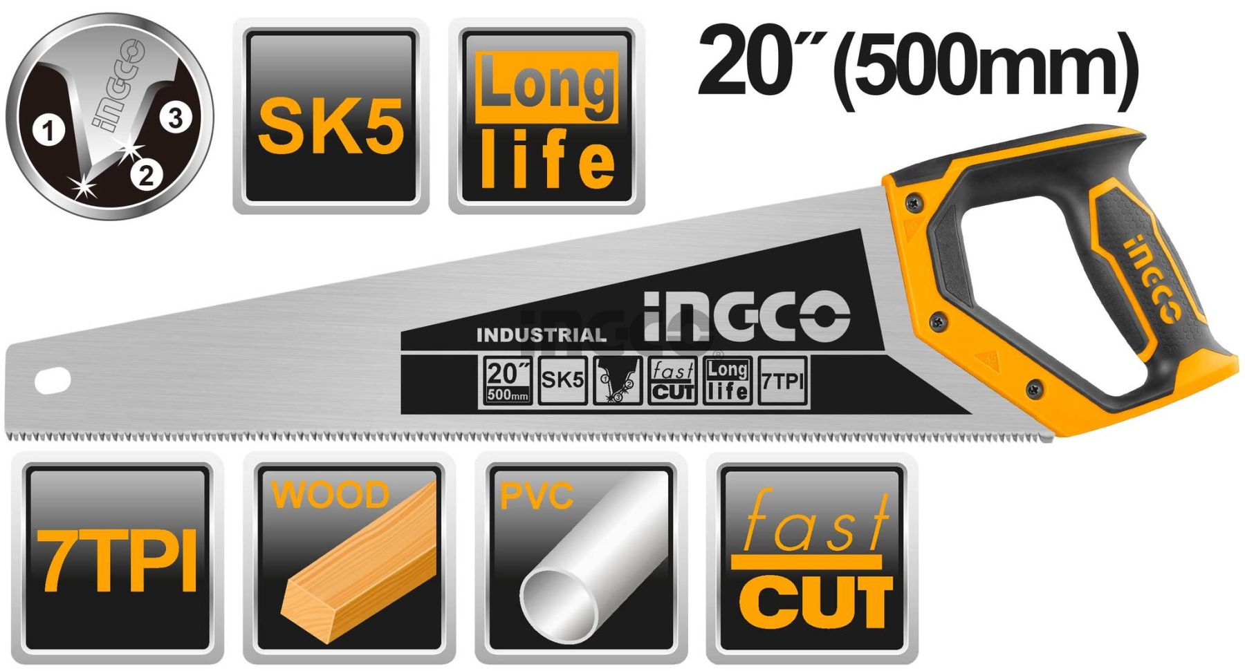 INGCO Ножовка по дереву INDUSTRIAL 500мм SK5 7TPI