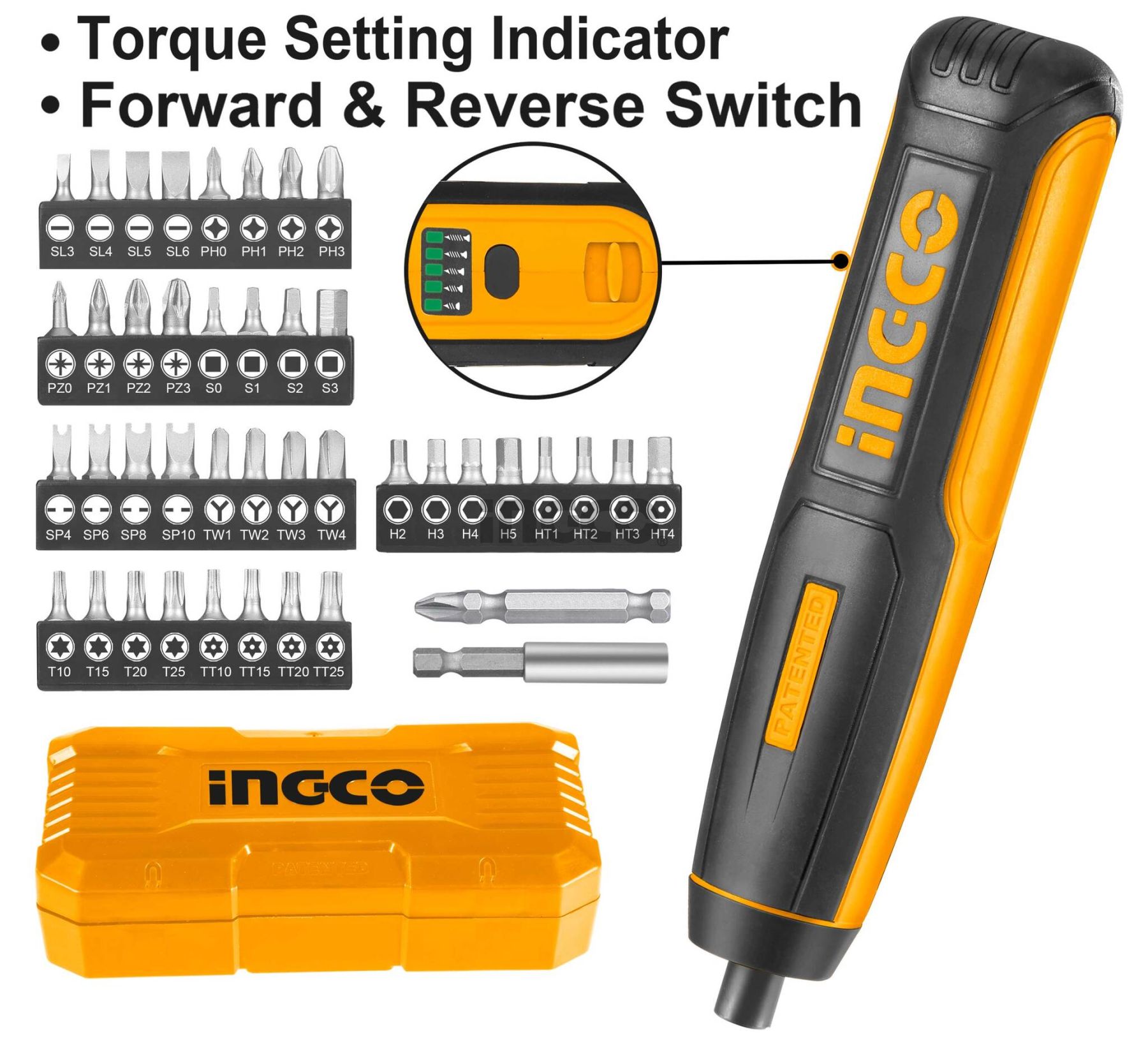Аккумуляторная отвертка INGCO CSDLI0403 предназначена для заворачивания/отворачивания винтов, саморезов и шурупов при использовании соответствующих насадок.