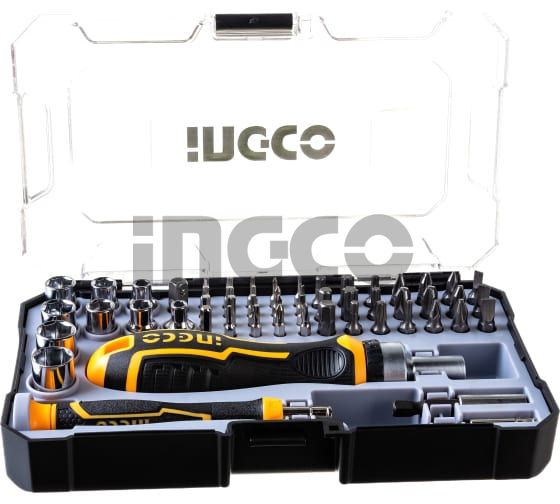 INGCO Отвертка реверсивная с набором бит 55 шт INDUSTRIAL