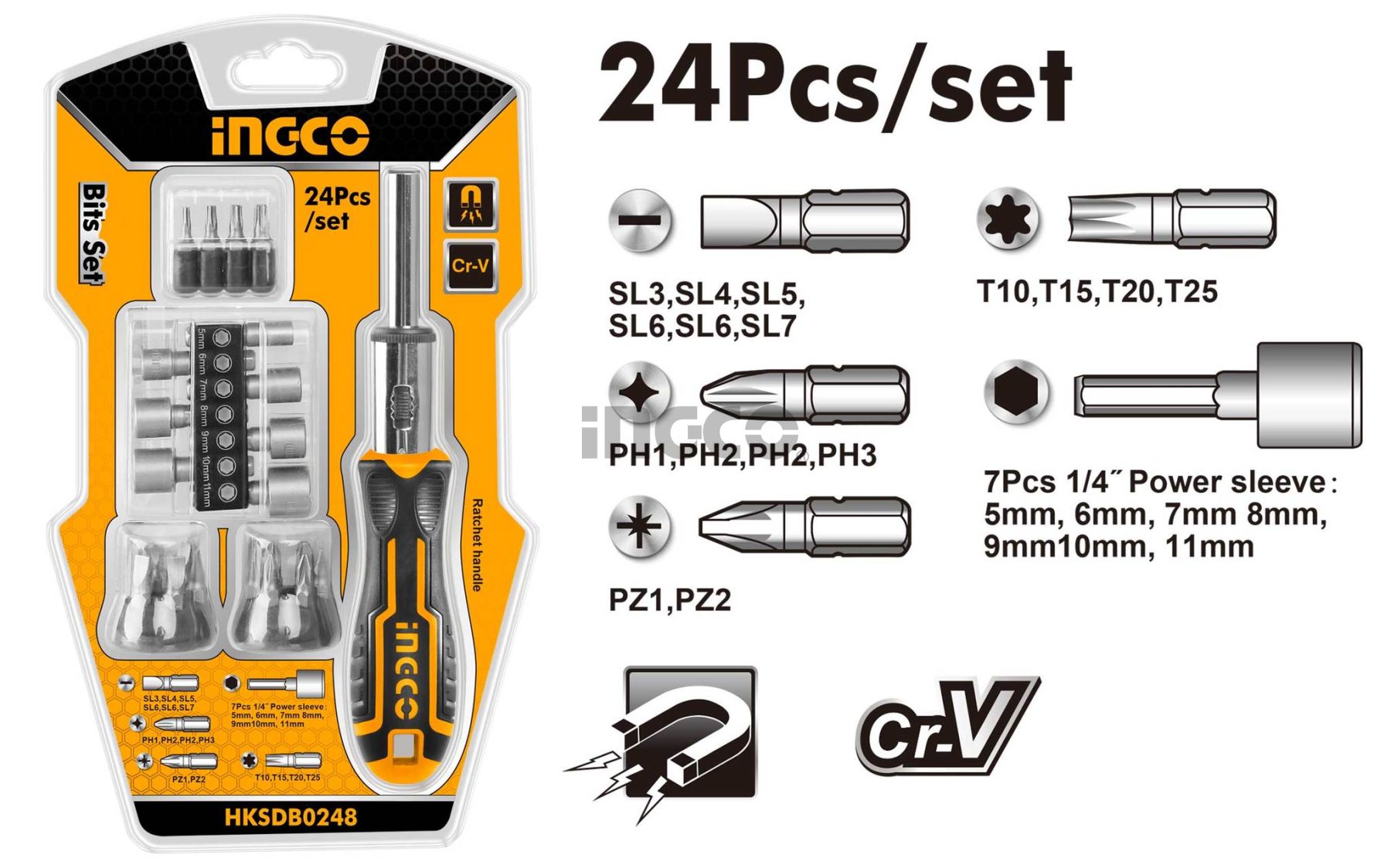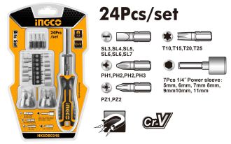 INGCO Отвертка реверсивная с набором бит и держателем 24 в 1