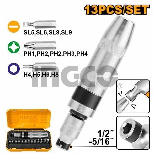 INGCO Отвертка ударная с набором бит 13 шт. INDUSTRIAL