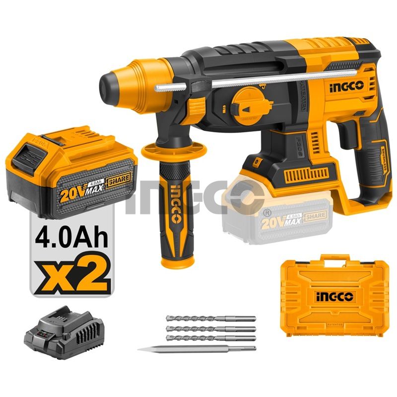 INGCO Перфоратор аккумуляторный бесщеточный INDUSTRIAL 20W Li-ion/ SDS-Plus/ 2.5 Дж/ 2x4 Ач