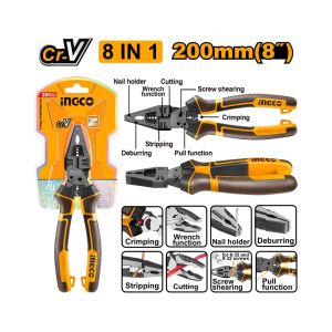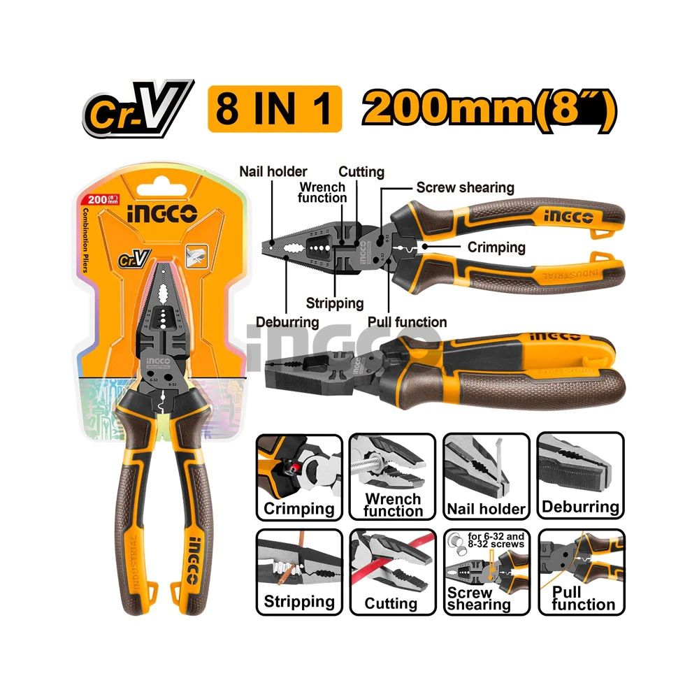 INGCO Плоскогубцы комбинированные многофункциональные 8-в-1 INDUSTRIAL 200мм 8"