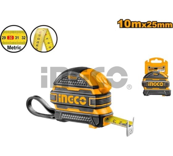 INGCO Рулетка измерительная 10м х 25мм/ ударопрочный обрезиненный корпус