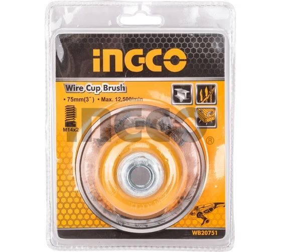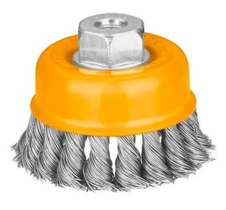 Щетка чашечная INGCO WB20751 используется для работы с УШМ. Служит для зачистки поверхностей покрытых лаком, краской, подходит для устранения ржавчины на металлических изделиях.