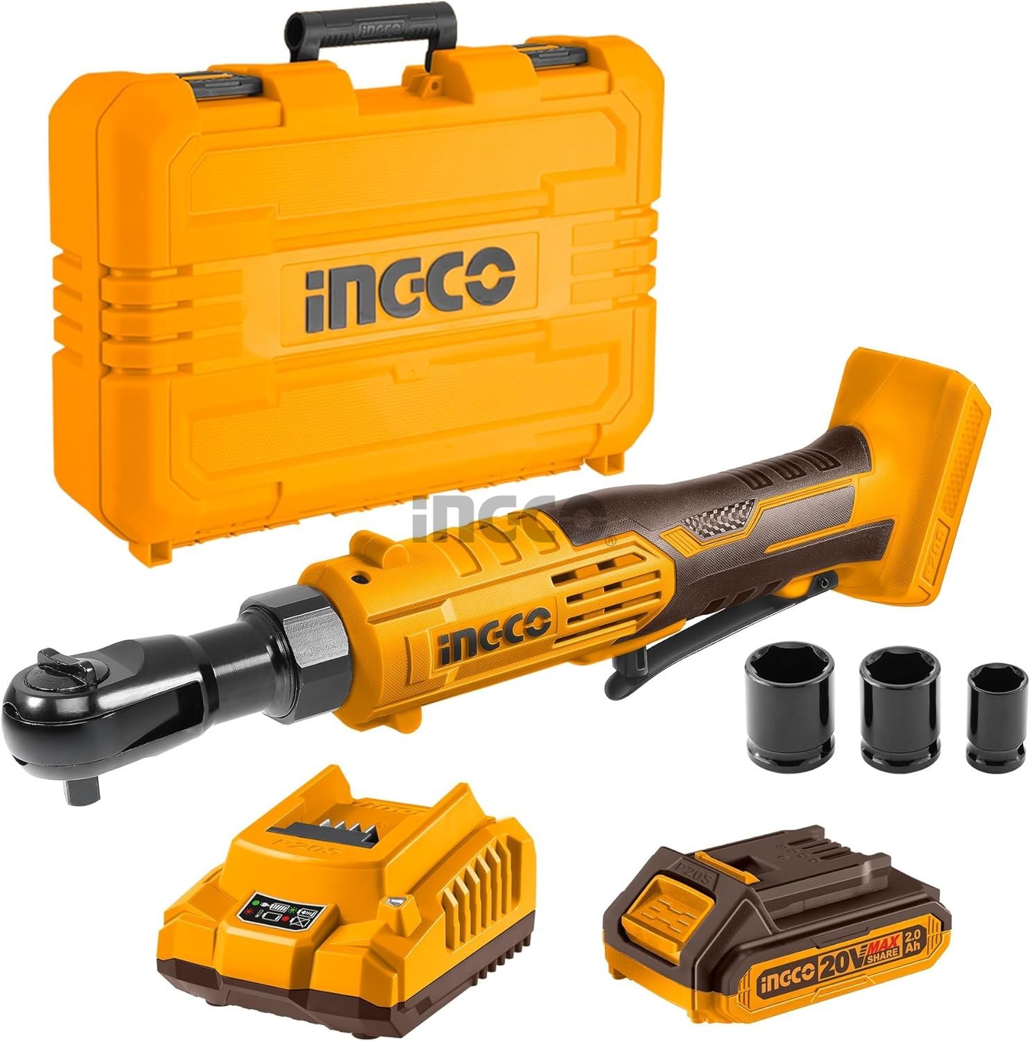 INGCO Трещотка аккумуляторная Li-Ion 20W INDUSTRIAL 2Ач 1шт/65 Нм