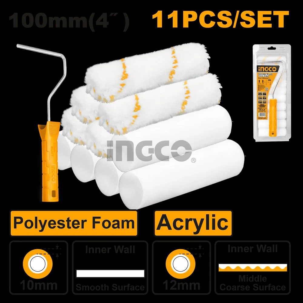 Набор малярный: валик с комплектом роликов INGCO HKTCB121001 отлично подойдет для отделки внутренних стен, а также деревянных и других гладких поверхностей.