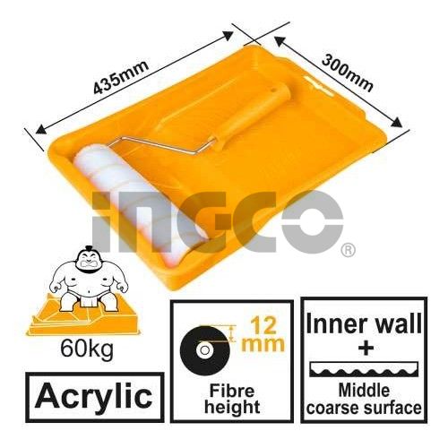 Малярный набор INGCO HKTCB83230083 подойдет для отделки как внутренних так и наружных стен. В комплекте держатель для роликов 230 мм, 1 ролик 230 мм с ворсом 7 мм, 3 ролика 230 мм с ворсом 12 мм, 1 ролик 230 мм с ворсом 18 мм, ванночка размерами 435х300x75 мм, а также флейцевая кисть шириной 25 мм. Материал шубок - полиакрил. Ножки на ванночке обеспечивают наклон для экономного расхода краски и удобства использования.