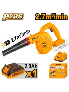 INGCO Воздуходувка аккумуляторная Li-Ion 20W 1x2 Ач/ Макс. объем воздуха: 2,7 м³/мин.