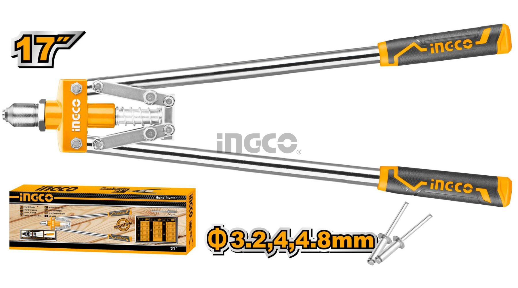 INGCO Заклепочник 420 мм/ Применимые заклёпки: 3.2, 4, 4.8 мм
